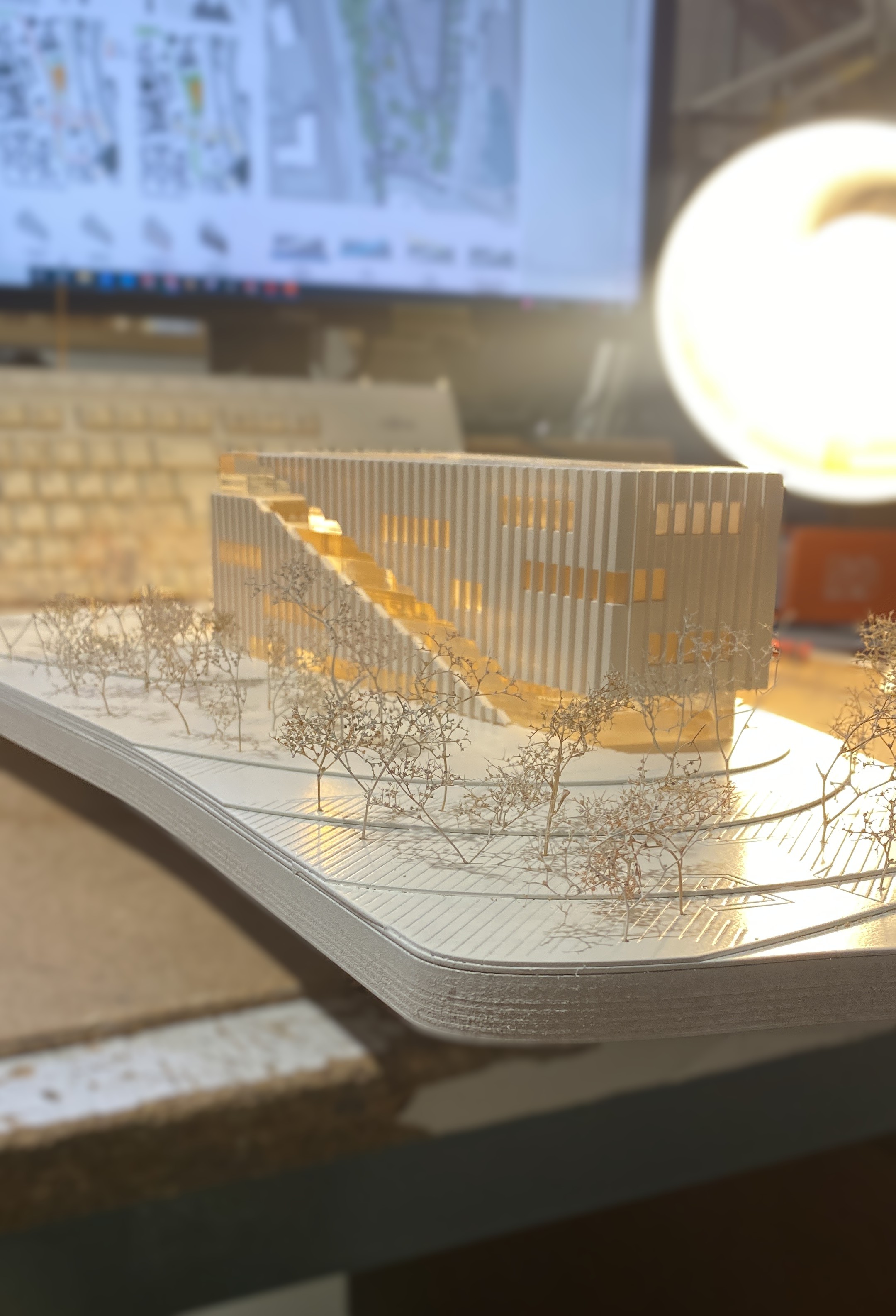 Architekturwettbewerbsmodell „Georg-Scherer-Halle mit Parkhaus | Dachau“